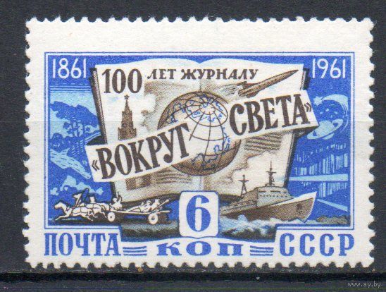 100 лет со дня основания журнала "Вокруг света" СССР 1961 год серия из 1 марки