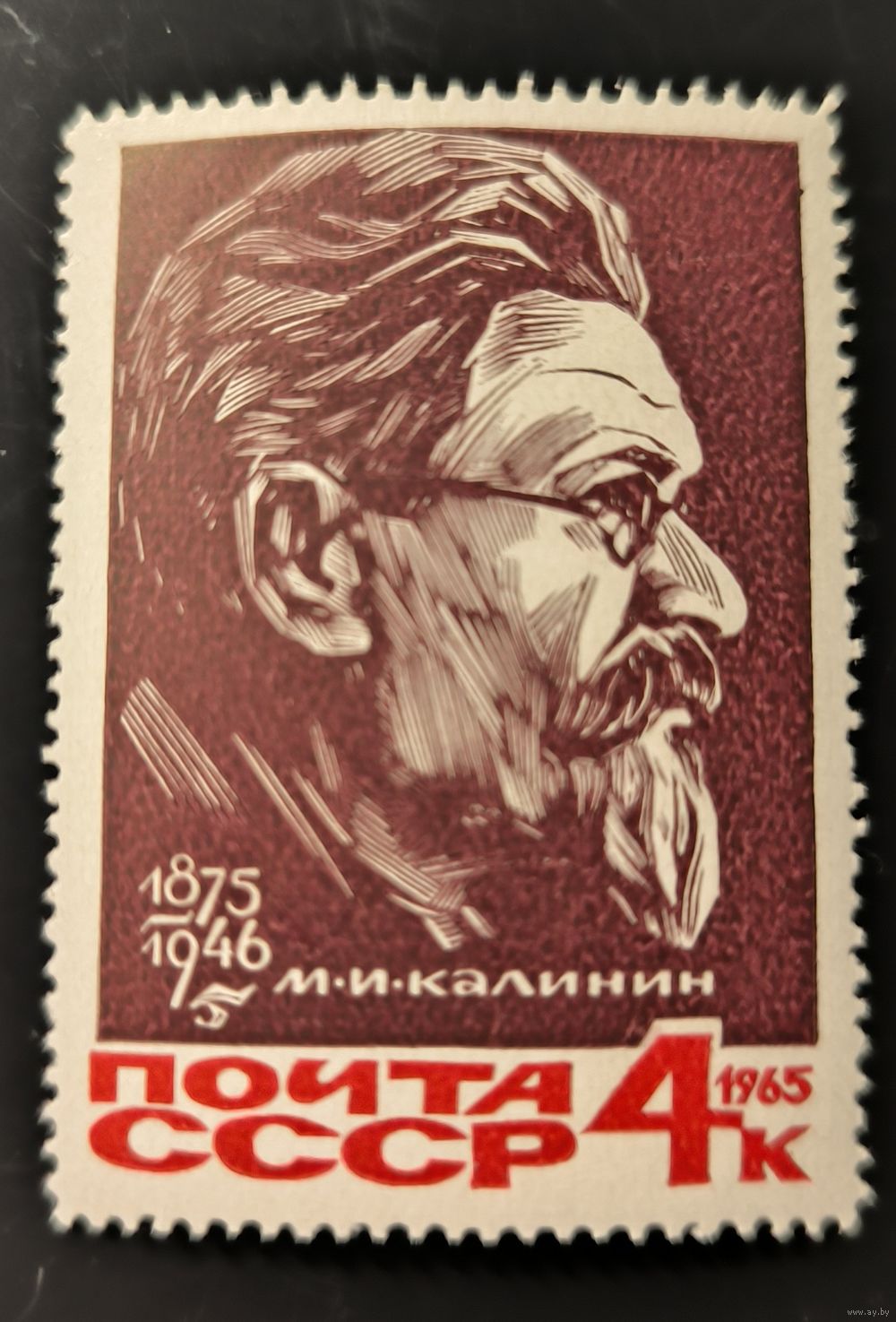 СССР. 1965г. 100 лет со дня рождения М.И.Калинина. 4 коп (Заг № 3188Ка). Короткая полка "5".