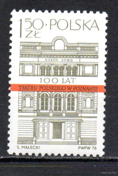 100 лет театру в Познани Польша 1976 год серия из 1 марки
