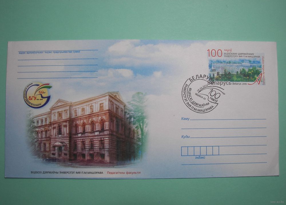 100 лет Витебскому университету. им. П.Машерова. Спец.гашение. 2010г.