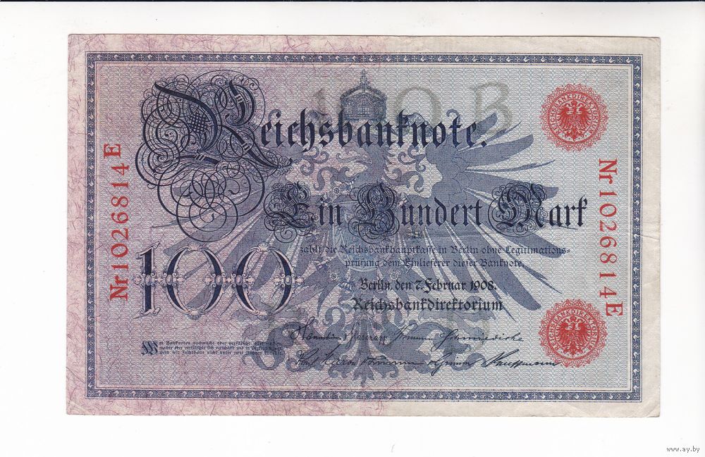 100 МАРОК 1908 ГЕРМАНИЯ КРАСНАЯ ПЕЧАТЬ