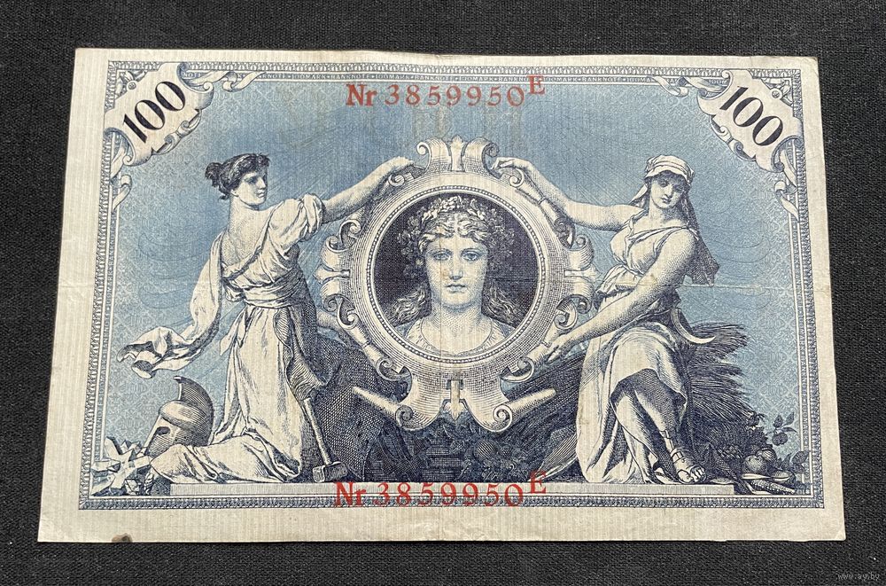 Эмісіі Рэйхсбанка (Reichsbank) Германскай Імперыі. Імперскія банкноты (Reichsbanknote) 100 Mark. Тып 1883 г. „Blauer Hunderter“. Імперскія банкноты 100 марак тып 1883 г. канфіскаваны з абарачэння 05.07.1925 г. Выпуск імперскіх банкнот 100 Mark. Тып 1883 г. быў спынены ў 1908 годзе. У зварот стаў паступаць новы тып банкнот - Тып 1908 г. (Reichsbanknote. 100 Mark. Тып 1908 г. "Flotten-Hunderter"). Аднак з пачаткам Першай Сусветнай Вайны выпуск банкнот Тыпа 1883 г. (з датай 7. Februar 1908) быў адноўлены і працягнуты да 1922 г. Банкноты абодвух тыпаў - 1883 і 1908 выпускаліся ў абарачэнне паралельна адзін аднаму.