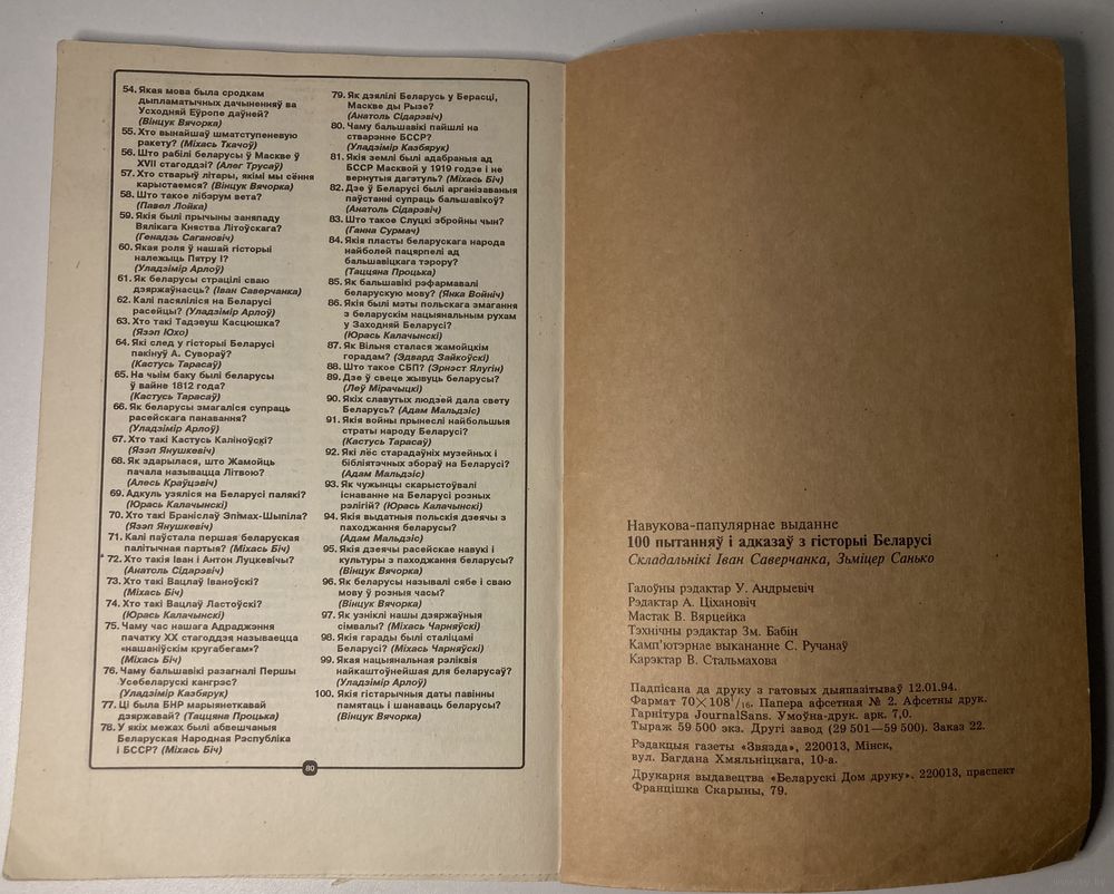 Упершыню асобным выданнем выпускаецца папулярна-асветніцкая кніга па гісторыі нашай бацькаўшчыны ў пытаннях і даказах, разлічаная на шырокае кола чытачоў. Можа быць выкарыстана як дапаможны матэрыял па вывучэнні гісторыі Беларусі ў навучальных установах краіны.