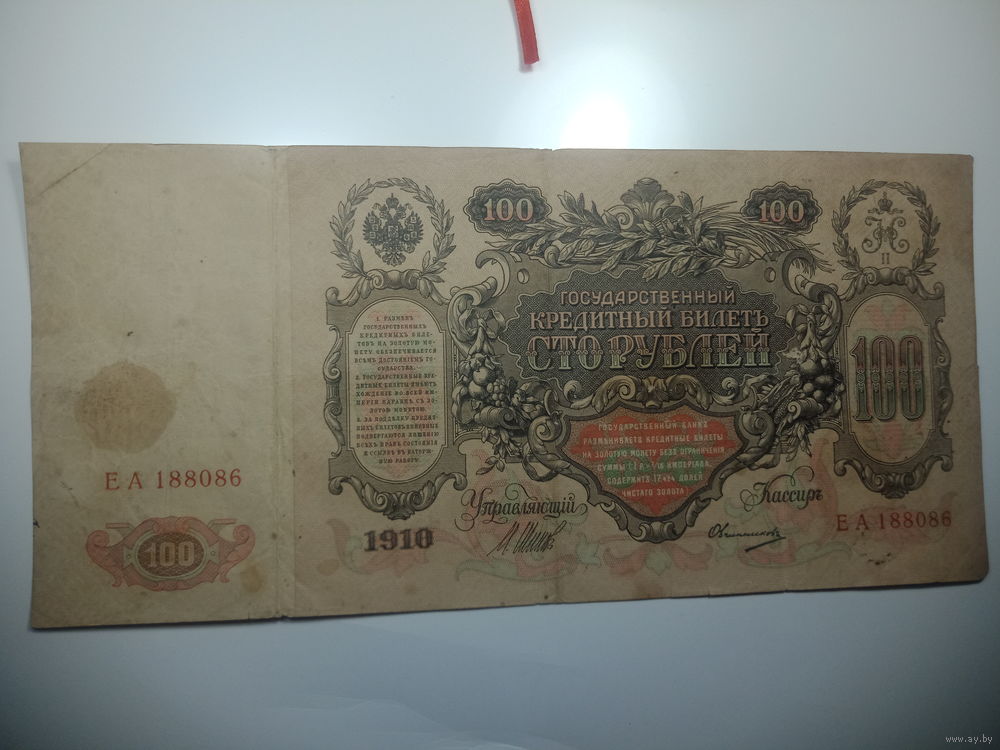 100 рублей 1910 года , Шипов - Овчинников , ЕА 188086