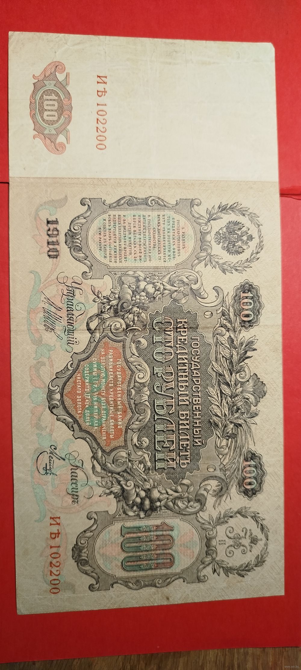 100 рублей 1910. Шипов - Метц. Иб. С рубля. (16) Красивый номер.