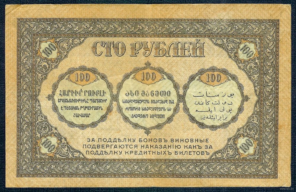 100 рублей 1918 год. - Россия (Закавказский комиссариат) -