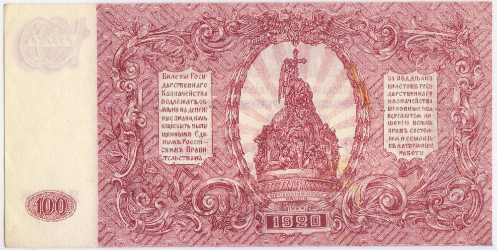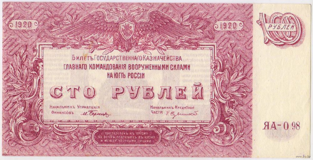 100 рублей 1920 год. ГК ВСЮР !!! aUNC!!!