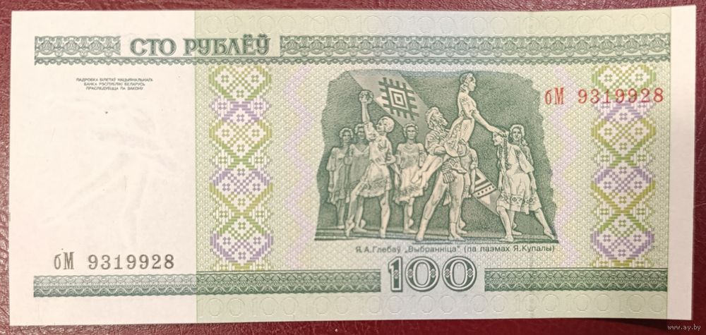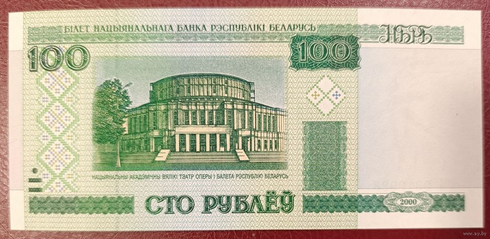100 рублей 2000 года, серия бМ - UNC - нить НБРБ снизу вверх