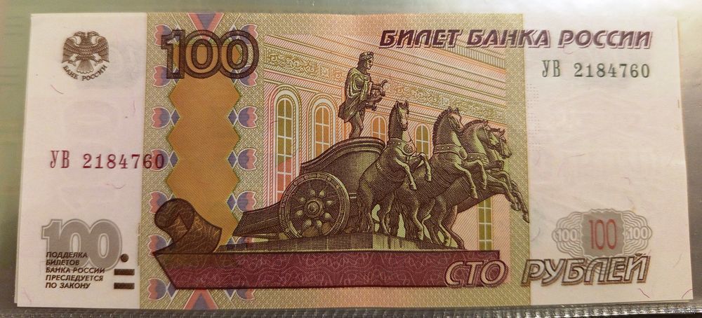 100 рублей Россия 1997 г.в. (мод. 2004 г.) УВ2184760