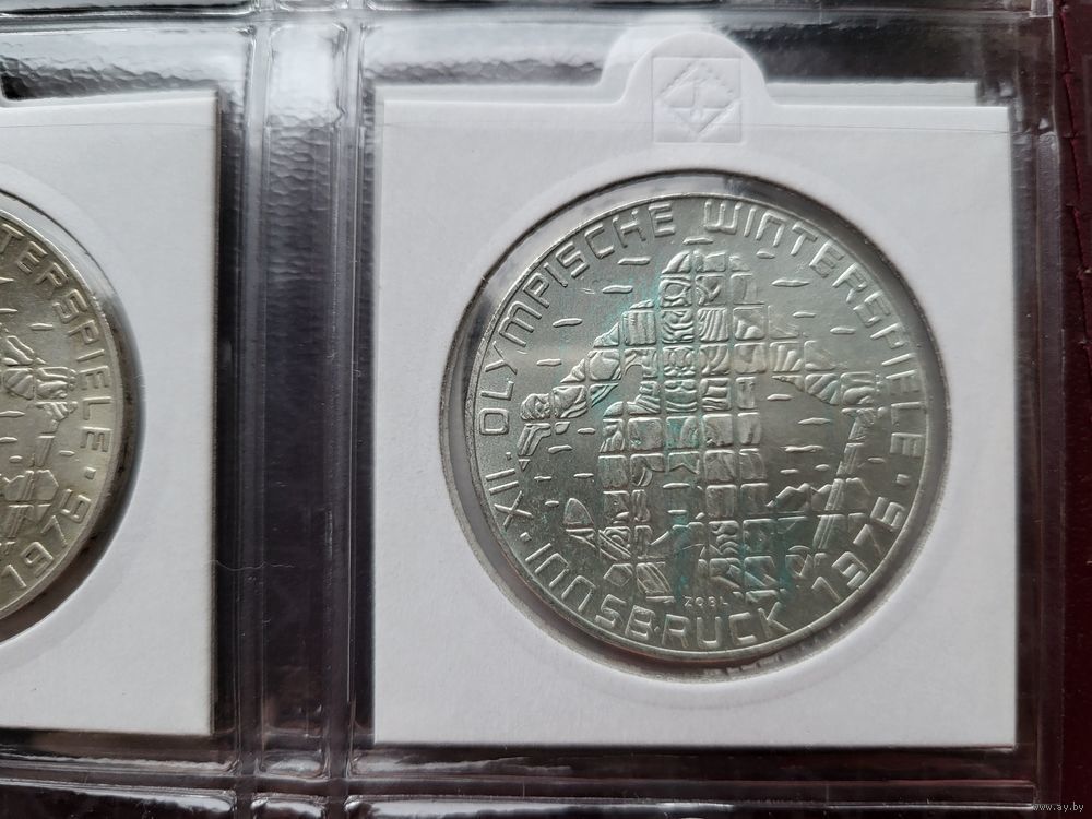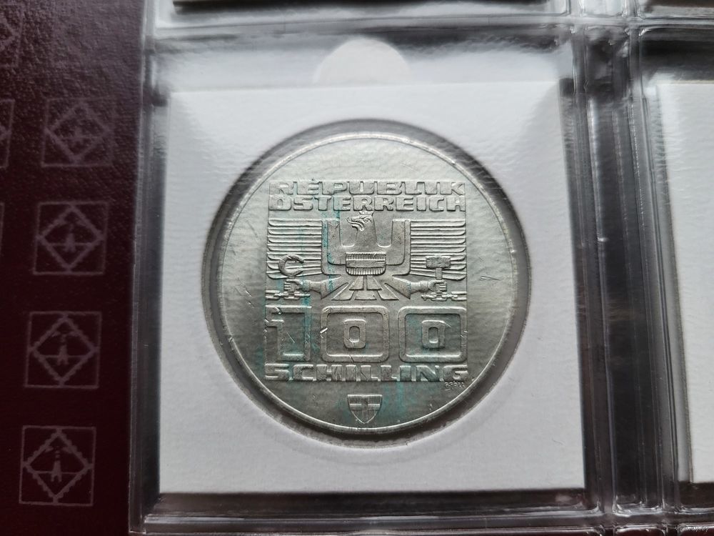 100 шиллингов 1975 Серебро 24 грамм 640 пробы 0,494 унции! Австрия XII зимние Олимпийские Игры, Инсбрук 1976 - Лыжник (Щит - Вена)! ВОЗМОЖЕН ОБМЕН!
