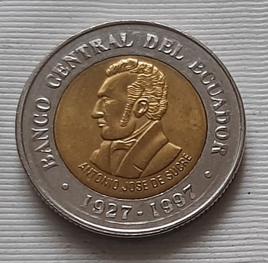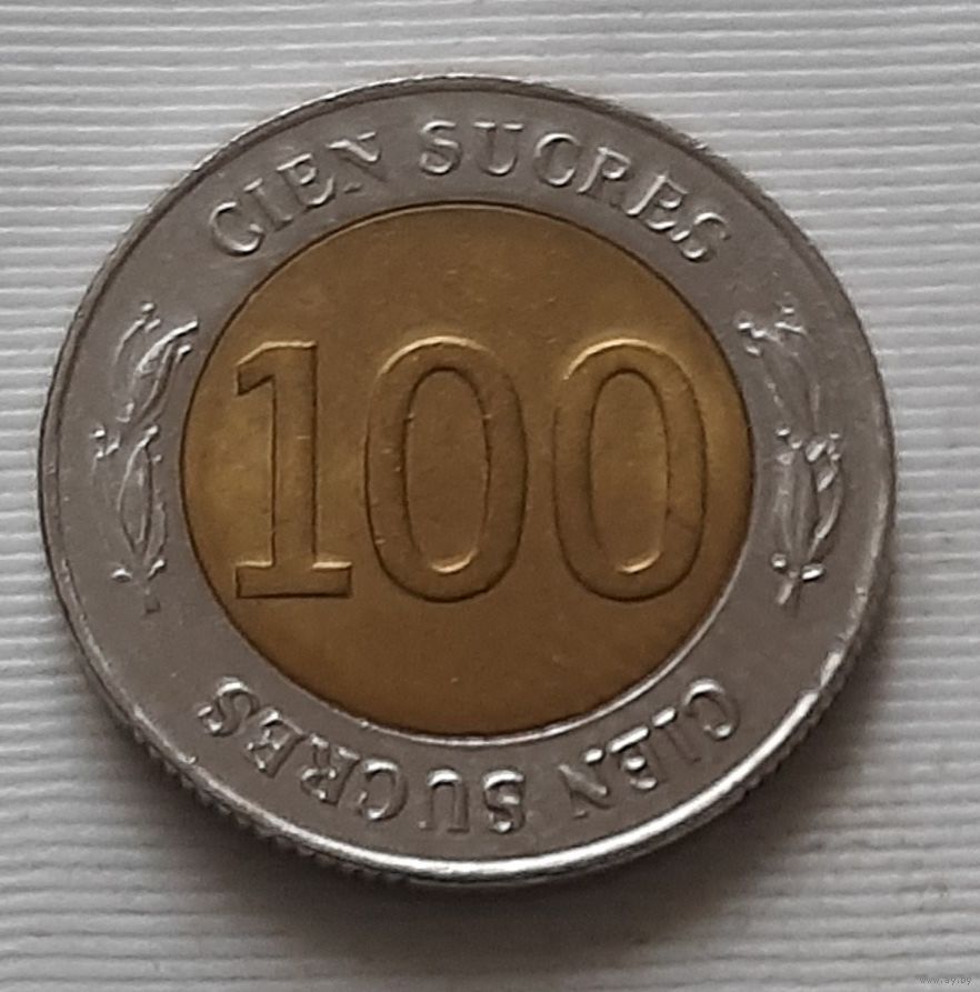 100 сукре 1997 г. 70 лет Центробанку. Эквадор