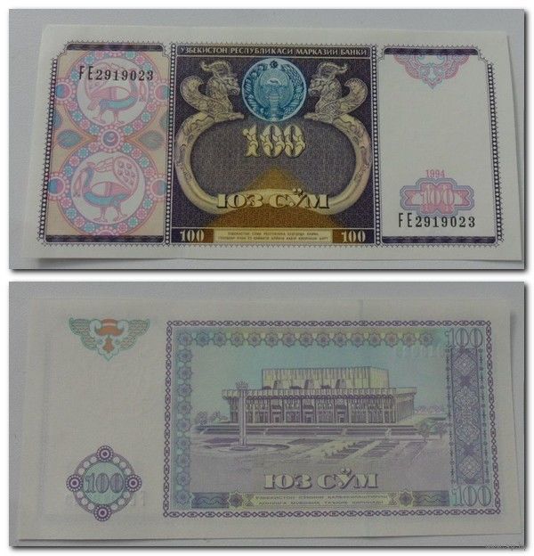 100 сум Узбекистан 1994 г.в. UNC. (Номер банкноты будет отличаться)