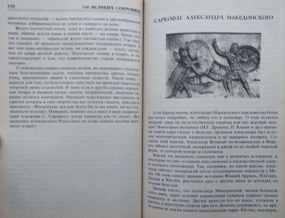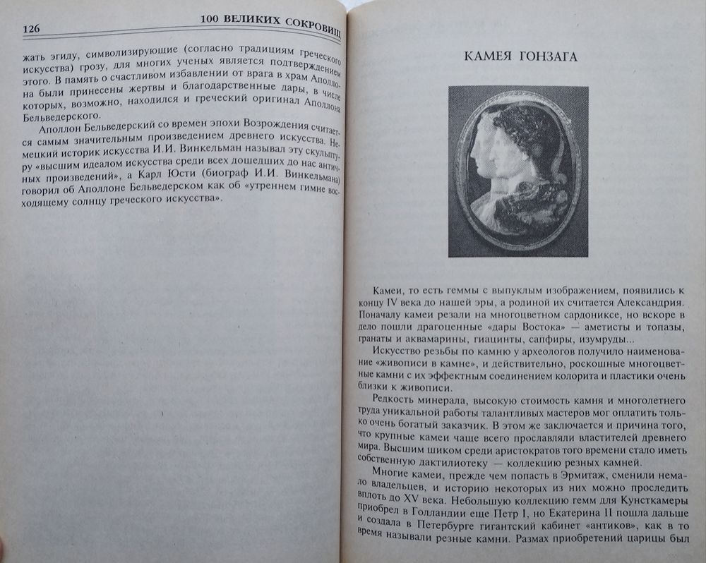 Большой формат. Тираж 7000 экз. 464 стр. 100 ВЕЛИКИХ СОКРОВИЩ - увлекательная книга о самых знаменитых сокровищах и реликвиях, которые были созданы в разные времена на разных континентах разными народами: это и археологические находки, и драгоценные камни, о которых слагались легенды, и реликвии монархов, уникальные ювелирные изделия, редкие монеты и статуэтки и святыни народов мира...