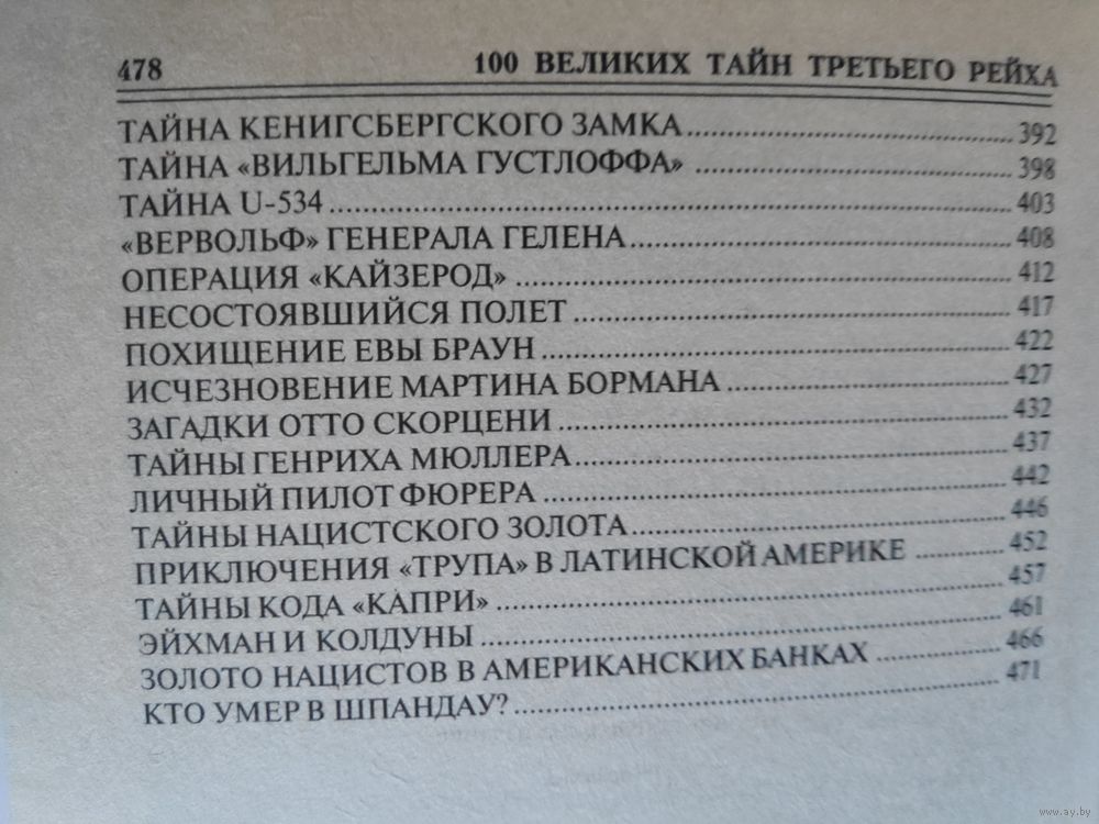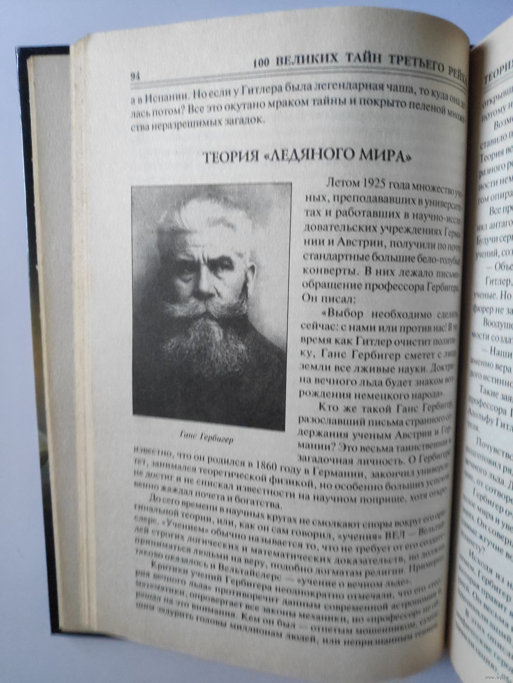 Владел ли Гитлер Копьем Судьбы - одной из величайших христианских реликвий? Насколько реальны слухи о том, что нацисты искали Святой Грааль? Как относиться к современным легендам о тайных базах вермахта на островах Ледовитого океана и в Антарктиде, о попытках немецких ученых создать «летающую тарелку» или даже вступить в контакт с инопланетянами? Окончательного ответа на эти интригующие вопросы пока нет. Однако, прочитав эту книгу, вы несомненно пополните свои знания о фантастических амбициях одного из самых жестких политических режимов в мировой истории и о реальных, поистине удивительных достижениях немецких ученых ХХ века, об их непростых судьбах.