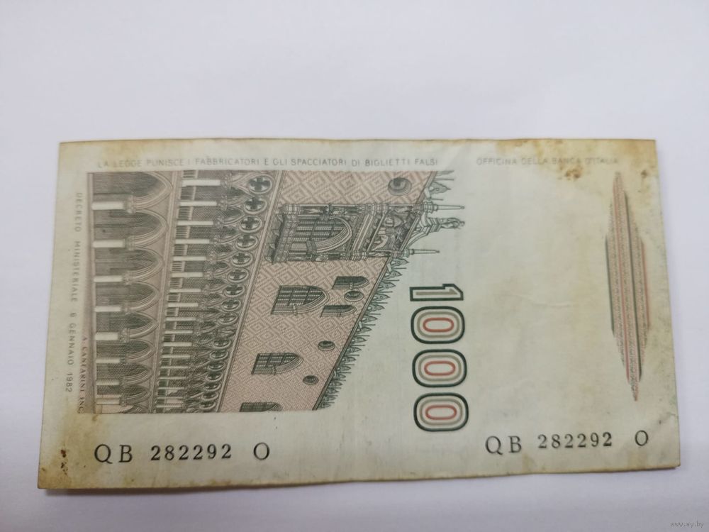 1000 лир 1982г,Италия, водяной знак Марко Поло, номер 282292