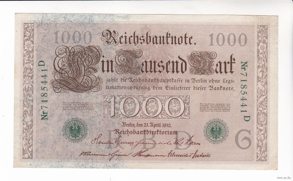 1000 МАРОК 1910 ГЕРМАНИЯ ЗЕЛЕНАЯ ПЕЧАТЬ