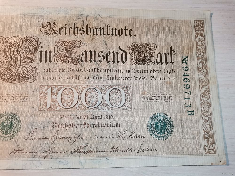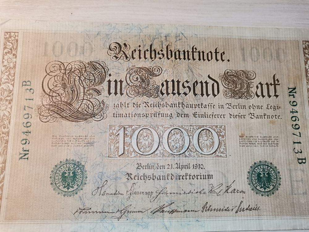 1000 марок 1910 года, Германия, зелёная печать.