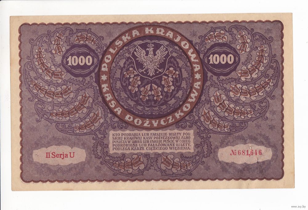 1000 МАРОК ПОЛЬСКИХ 1919 ПОЛЬША 2 СЕРИЯ