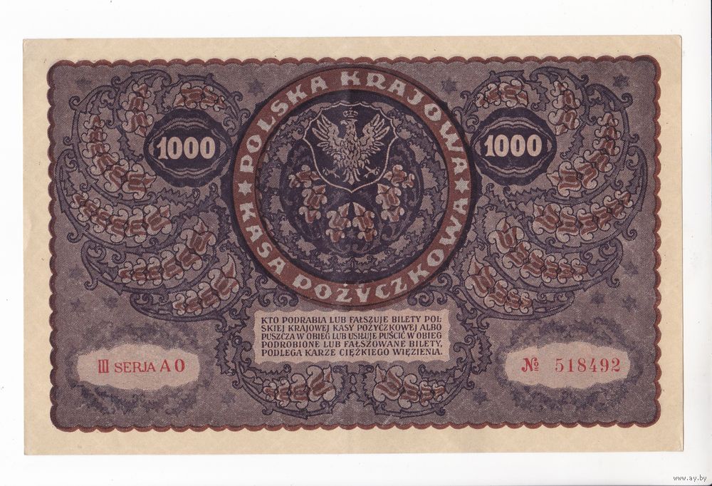 1000 МАРОК ПОЛЬСКИХ 1919 ПОЛЬША 3 СЕРИЯ