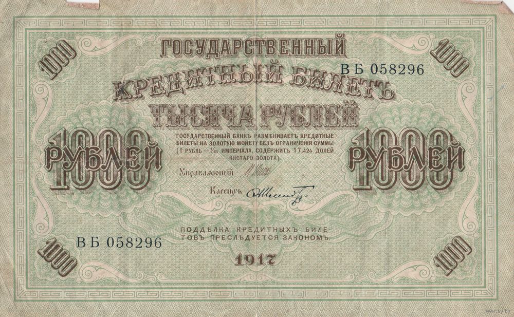 1000 рублей 1917 года. Думка