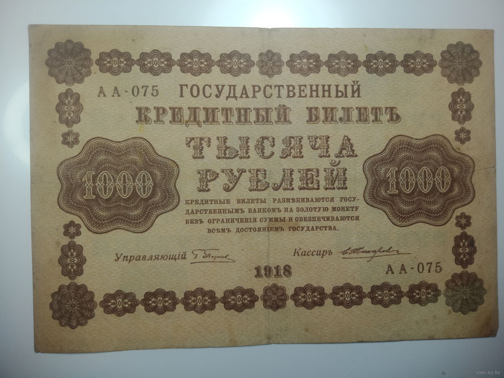1000 рублей 1918 года , Кассир Е. Жихарев , АА - 075