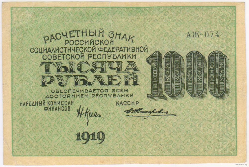 1000 рублей 1919 год. Жихарев. серия АЖ 074