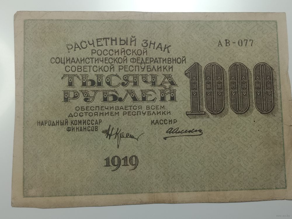 1000 рублей 1919 года , Кассир Лошкин , АВ - 077