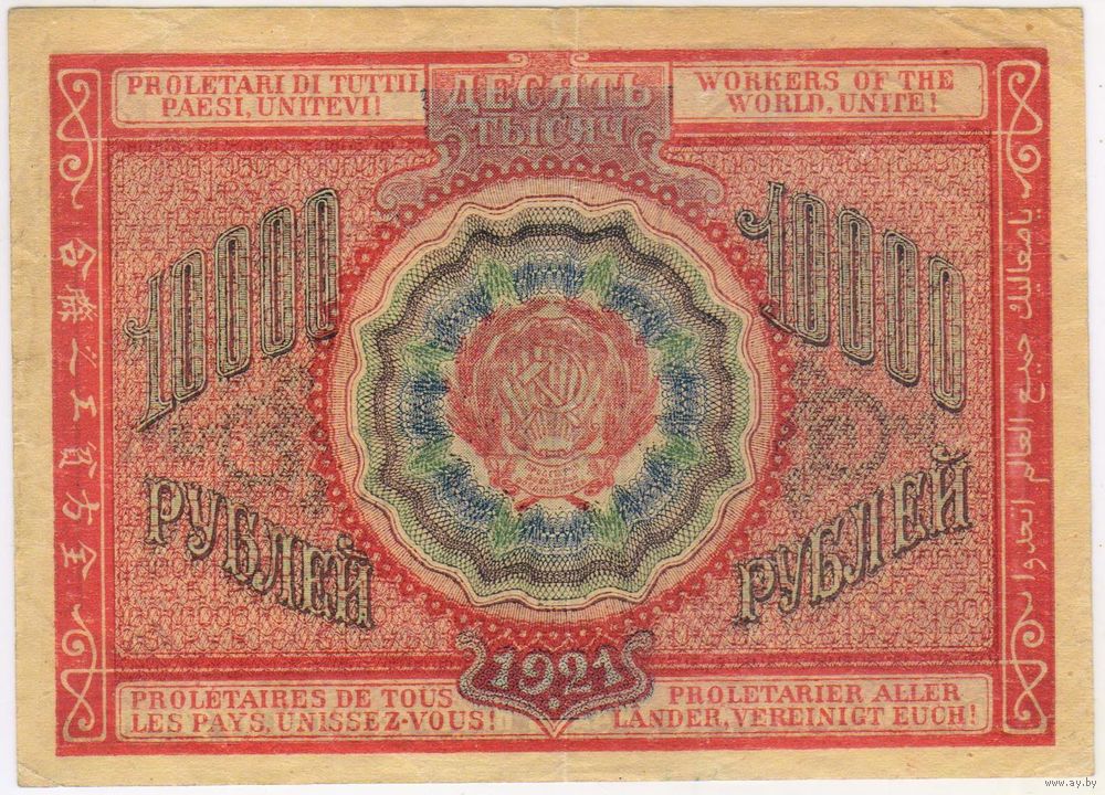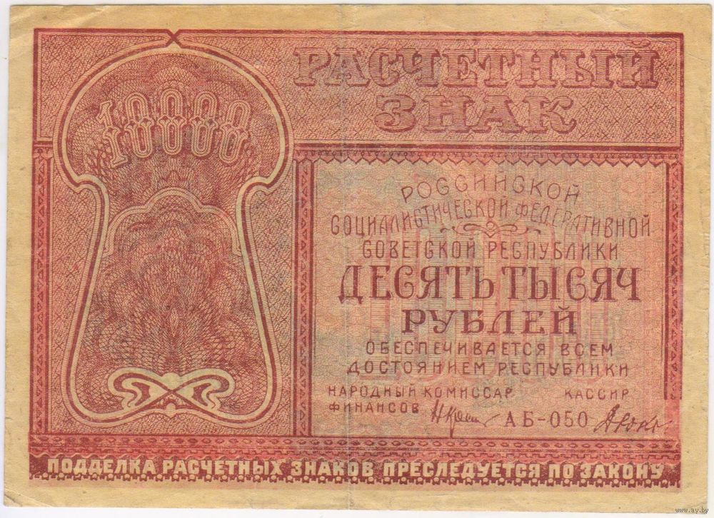 10000 рублей 1921 г. Крестинский Дюков. АБ-050. ФАБРИКА ГОСЗНАКА 1 МПФ.