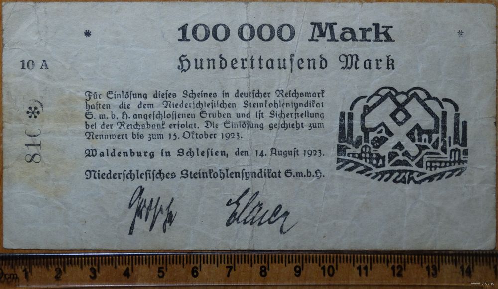 100000 марок 1923г. Вальденбург