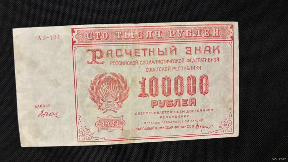 100000 рублей 1921 (Р117а3) Дьяков, VF+
