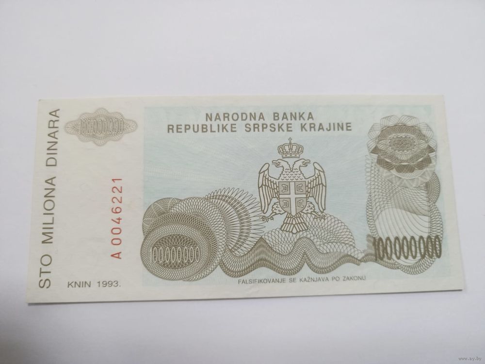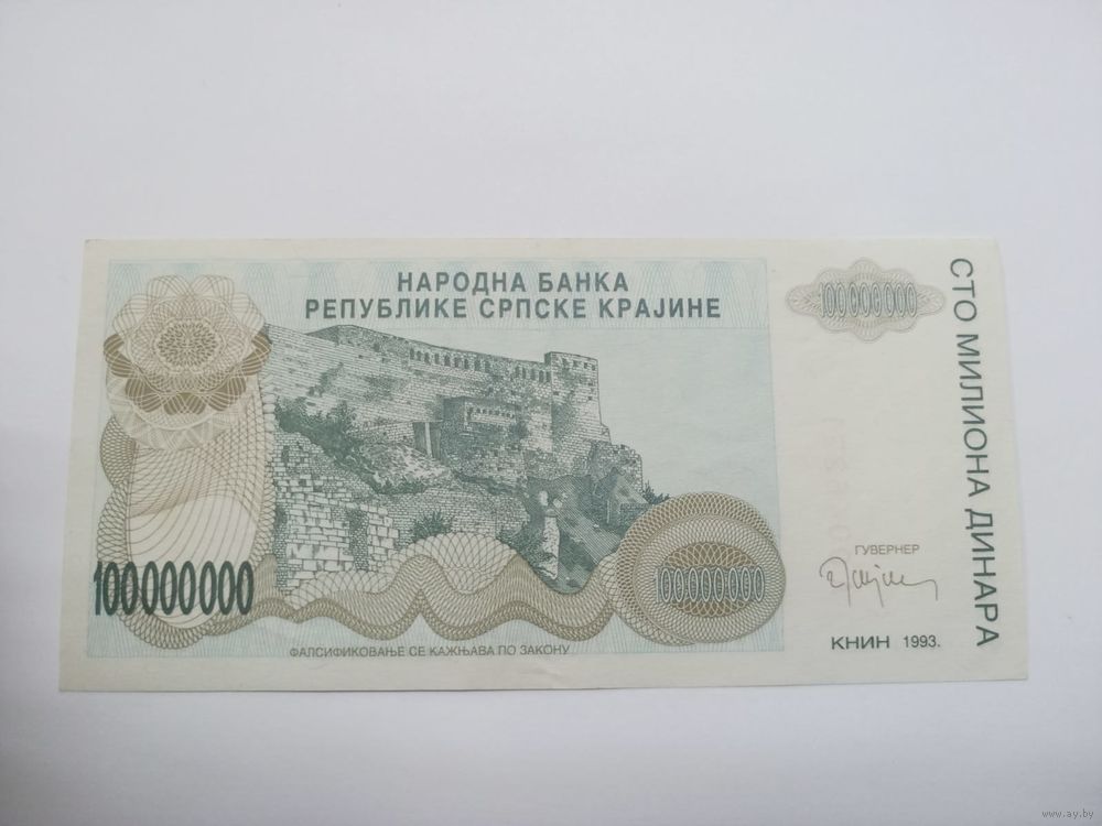 100000000 ( сто миллионов) динаров 1993 ,Хорватия ( Сербская Краина)