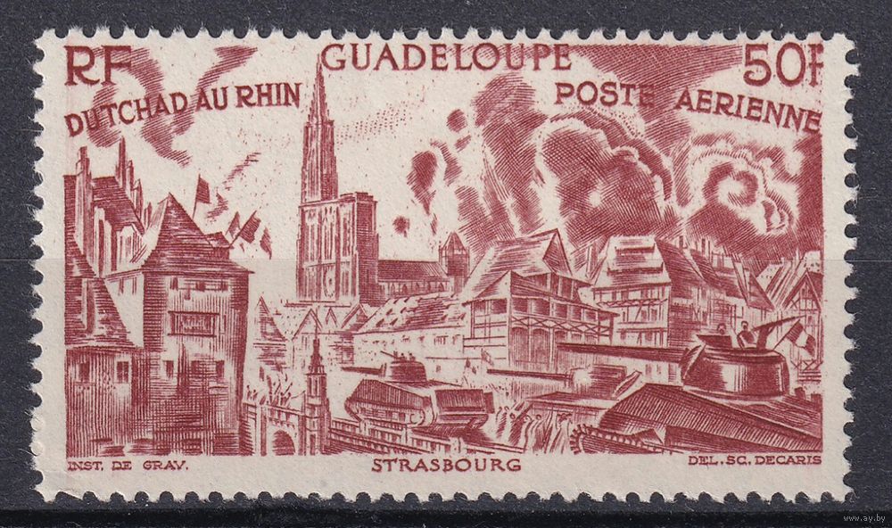 101.FrK. Франция. Колонии. Гваделупа. От Чада до Рейна. Авиапочта. 1947 г. 50 Fr. Mi.#213.