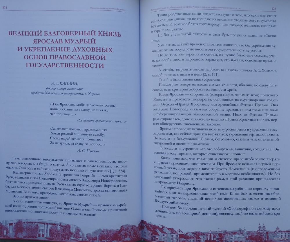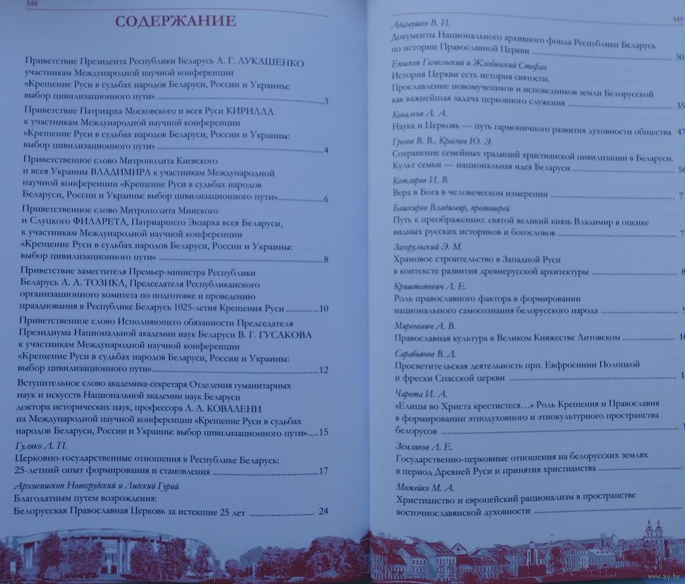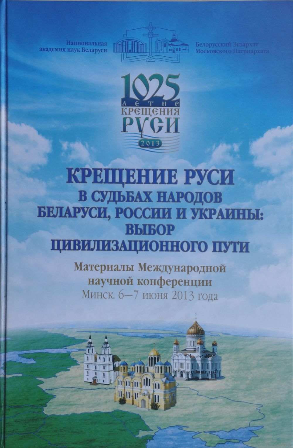 Подарочное издание в коробке. Большой энциклопедический формат. Мелованный альбом. Тираж 1000 экз. 352 стр. Крещение Руси в судьбах народов Беларуси, России и Украины: выбор цивилизационного пути: материалы Международной научной конференции, Минск, 6—7 июня 2013 г. /редкол.: В.Г. Гусаков [и др.]. — Минск: Издательство Белорусского Экзархата, 2013. — 352 с., [16] л. ил.