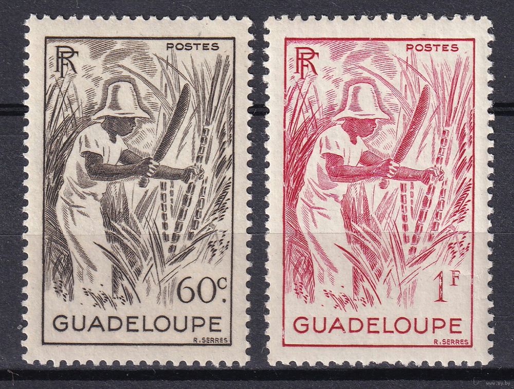 103.FrK. Франция. Заморский департамент Гваделупа. Местные мотивы. 1947 г. 60C, 1 Fr. Mi.##217-218.