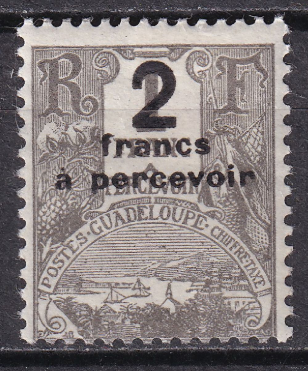 105.FrK. Франция. Колонии. Гваделупа. Доплатные марки. Порт Густавия. Надпечатка нового номинала. 1926 г. 2 Fr. Mi.#23.