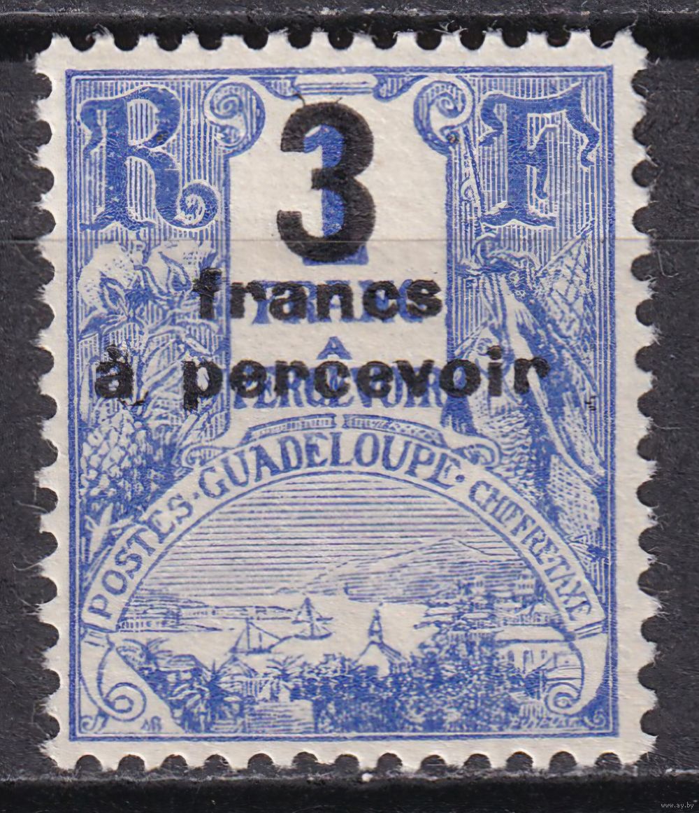 106.FrK. Франция. Колонии. Гваделупа. Доплатные марки. Порт Густавия. Надпечатка нового номинала. 1927 г. 3 Fr. Mi.#24.