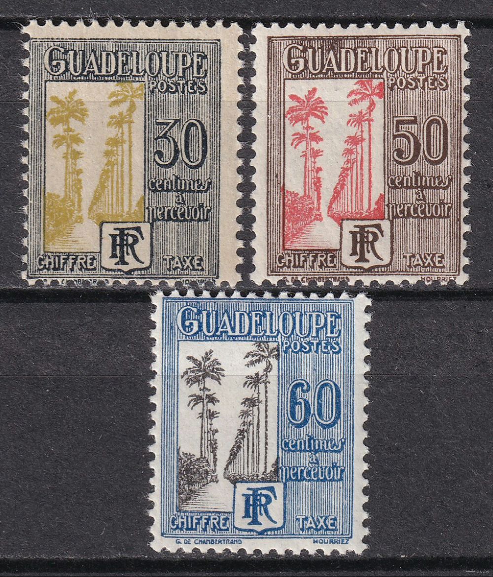 109.FrK. Франция. Колонии. Гваделупа. Доплатные марки. Палм - авеню в Капестерр - Бель. 1928 г. Mi.##32-34. (* - mi.##32,33 пожелтевший клей).