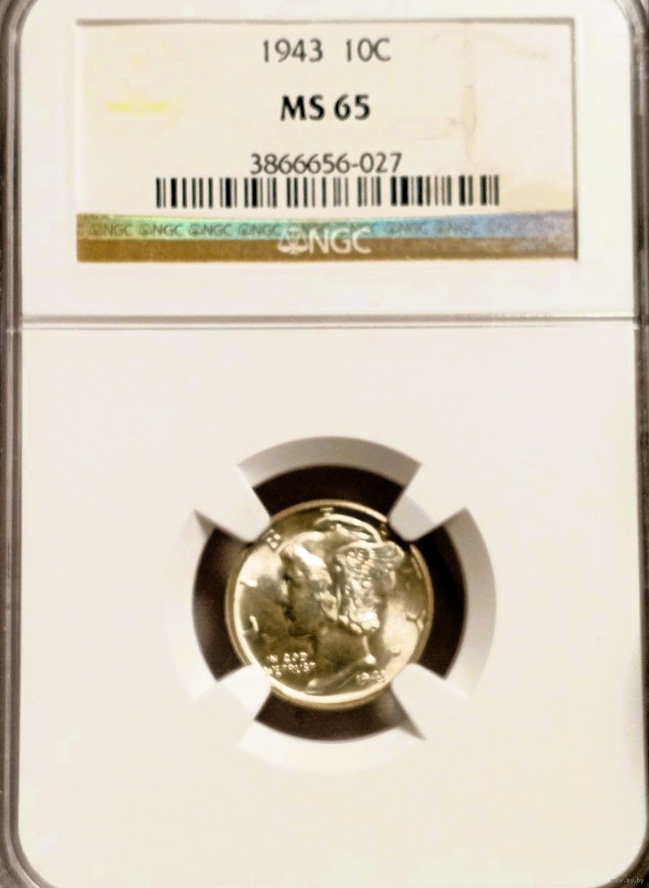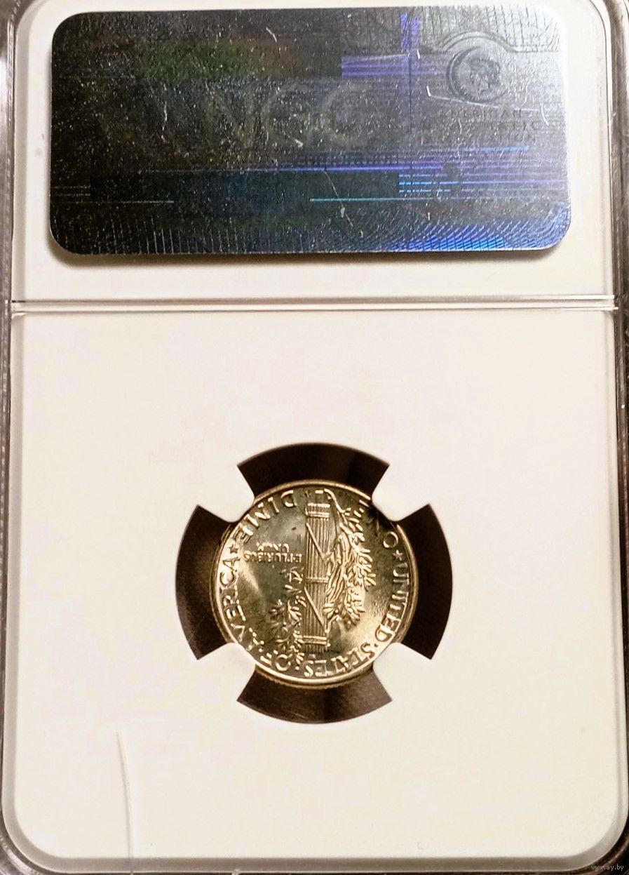 Коллекционная монета, 10 центов 1943, США "Mercury Dime", монетный двор S, вес 2,5 г., ms65 NGC!!!Яркая и красивая, великолепный экземпляр в коллекцию и отличная инвестиция!