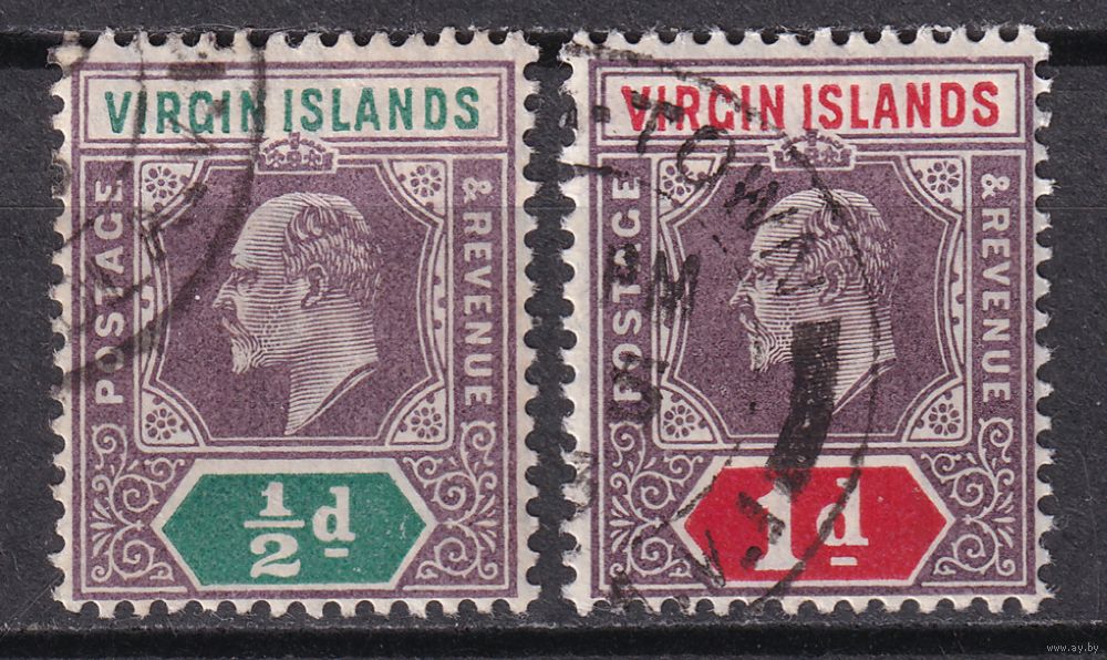 11.BrKCI. Великобритания. Колонии. Виргинские острова. Стандарт. Эдуард. 1904 г. 1/2P, 1P. Mi.##26/27.