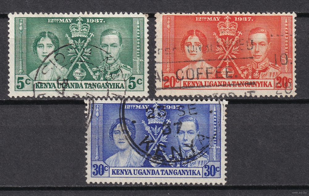 Кения, Уганда и Танганьика. Коронация Георга VI и Елизаветы. 1937 г. Полная серия. Mi.##49-51.