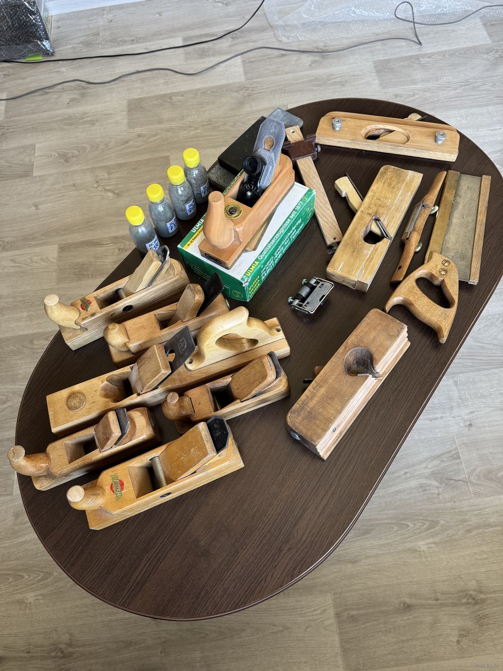 Продаётся коллекция отличных деревянных рубанков состоящая из 11 рубанков и одной пилы. Все рубанки находятся в рабочем состоянии, ножи профессионально заточены и готовы к работе.