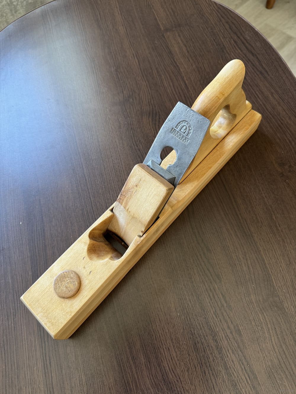 Присутствует интересный рубанок с латунной накладкой на подошве.