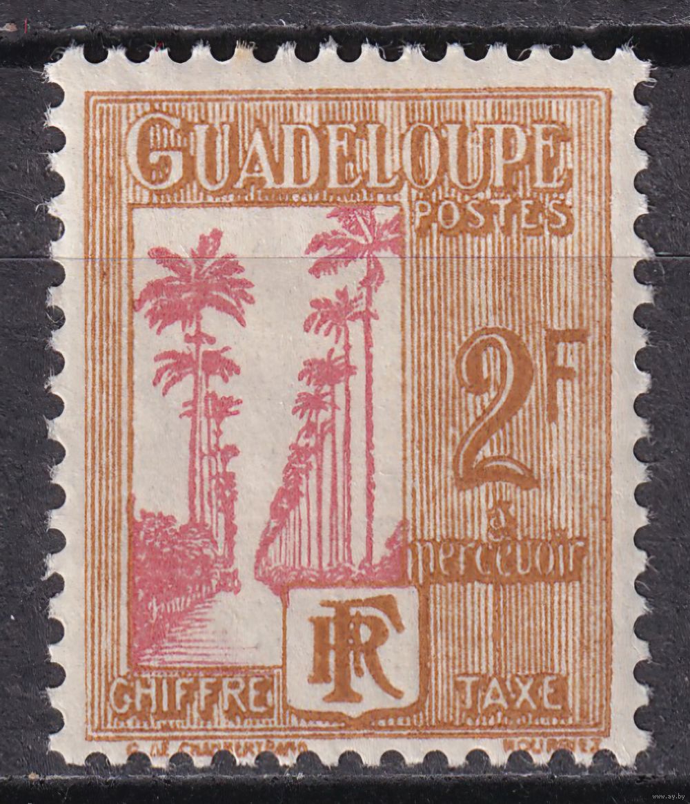 111.FrK. Франция. Колонии. Гваделупа. Доплатные марки. Палм - авеню в Капестерр - Бель. 1928 г. 2 Fr. Mi.#36.