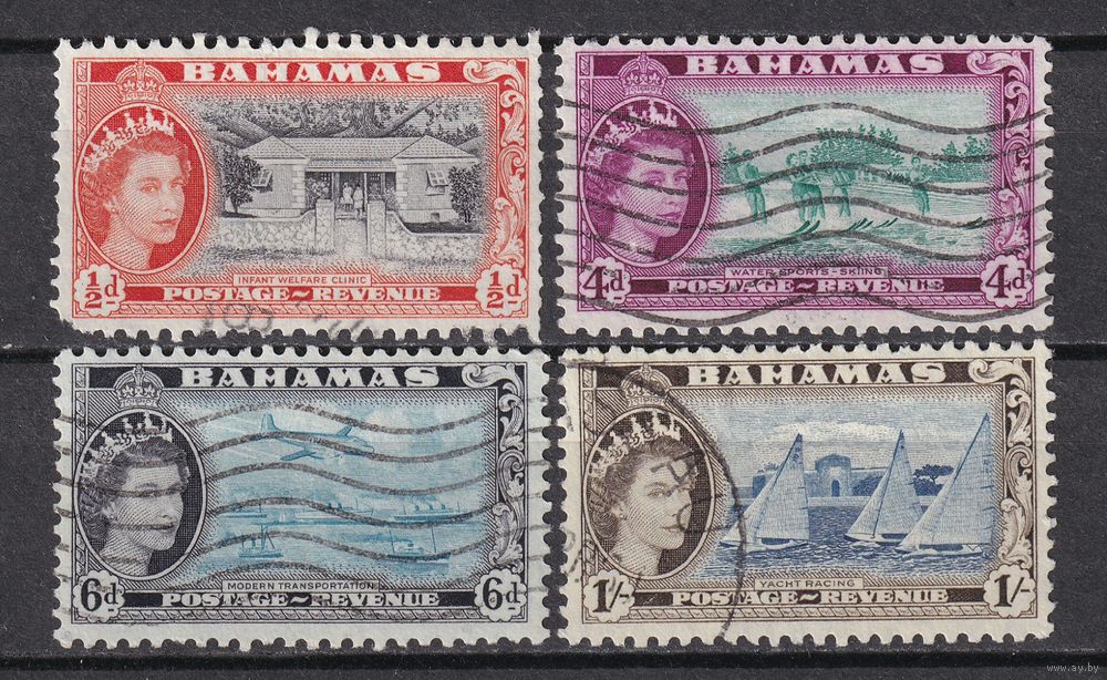 113.BrKCI. Великобритания. Колонии. Багамские острова. Елизавета II. 1954 г. 1/2P, 4P, 6P, 1 Sh. Mi.##163/168/170/173.