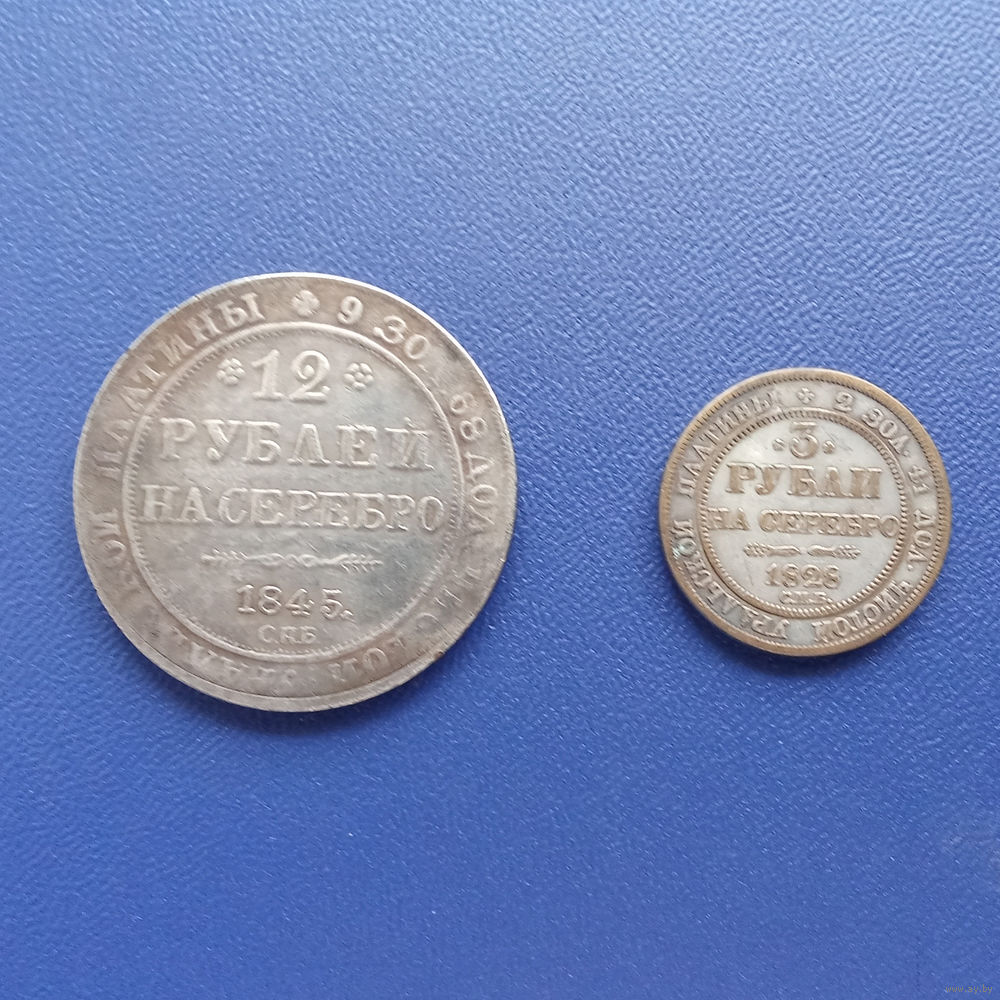 12 рублей 1845 г и 3 рубля 1828 г.С П Б Николай I ( 1825 - 1855 ) КОПИИ
