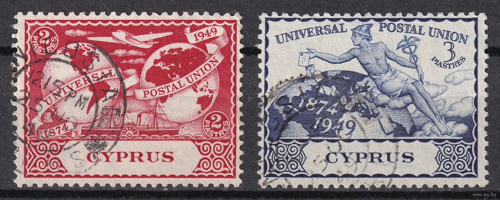 121.BrK. Великобритания. Колонии. Кипр. 75 лет Всеобщему Почтовому Союзу. 1949 г. 2p, 3p. Mi.##160/161.