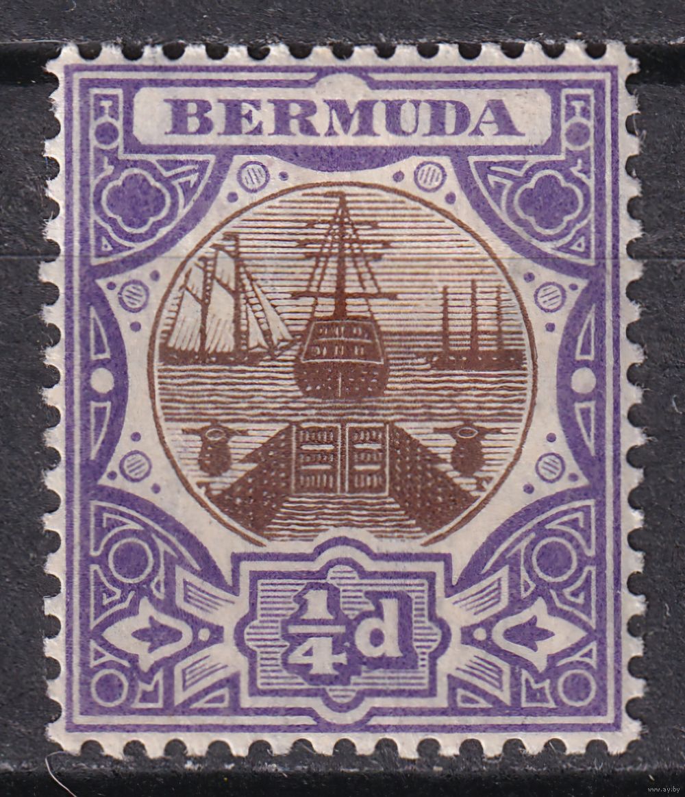 121.BrKCI. Великобритания. Колонии. Бермудские острова. Стандарт. Карабельный док. 1908 г. 1/4P. Mi.#25.