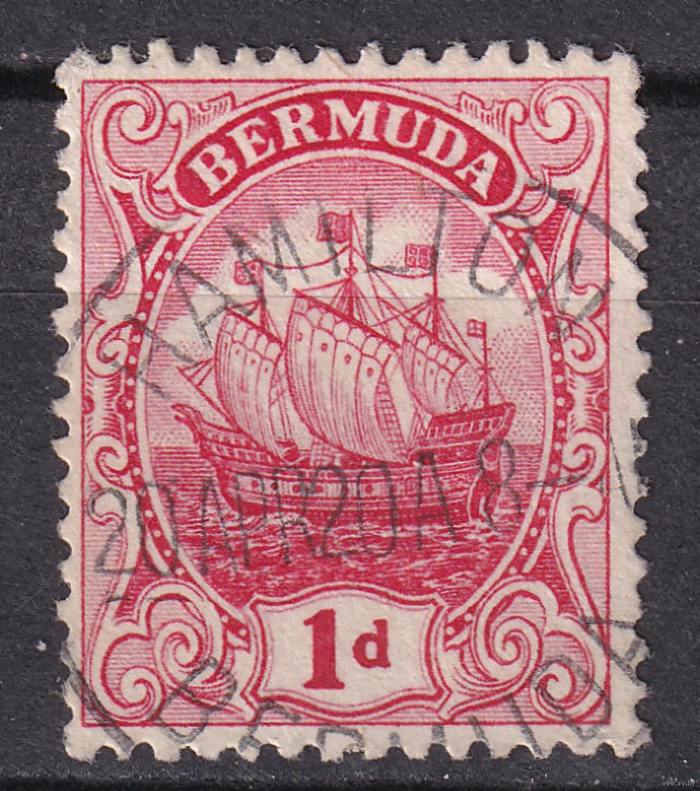 125.BrKCI. Великобритания. Колонии. Бермудские острова. Стандарт. Парусник Sea Venture. 1918 г. 1P. Mi.#36b.