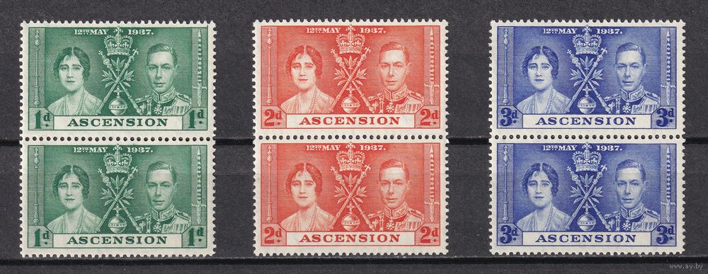 Остров Вознесения. Коронация Георга VI и Елизаветы. 1937 г. Полная серия. Пары. Mi.##36-38. MNH.