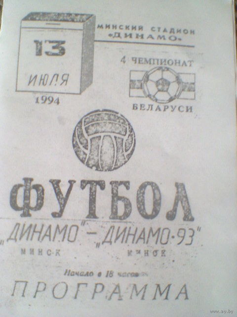13.07.1994--Динамо Минск--Динамо-93 Минск--тираж 100 штук